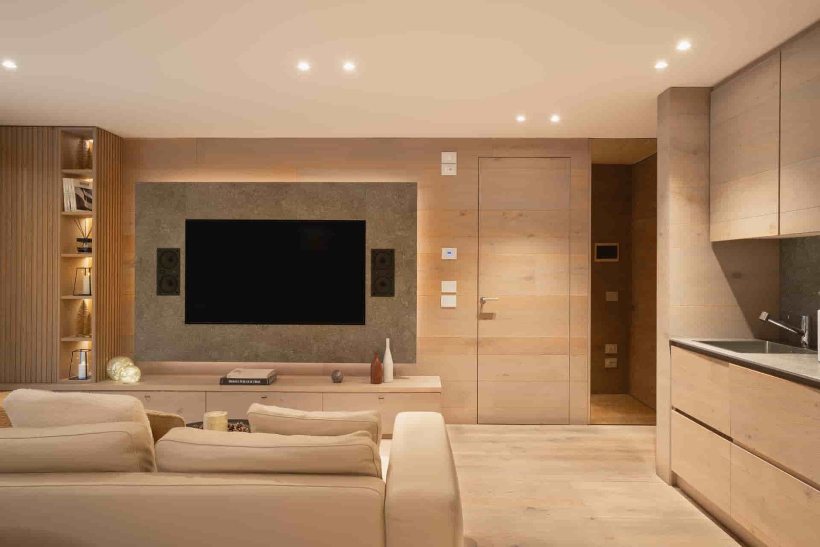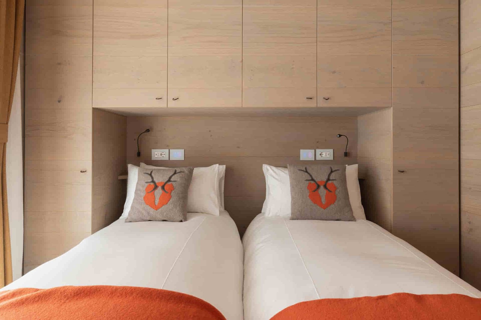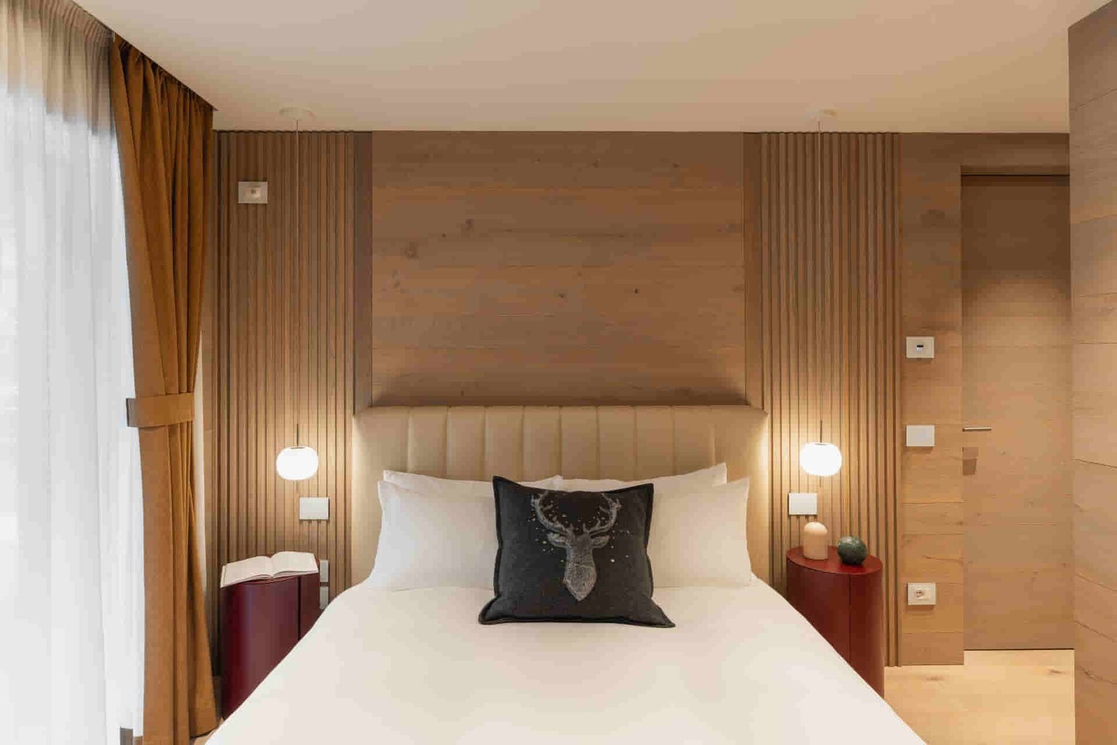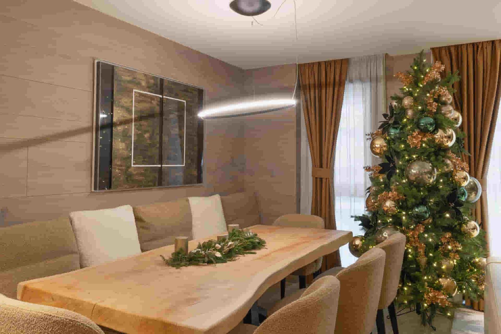 Enjoy a holiday you’ll never forget in our three-room apartment Alimonta, located in the new “Campiglio WOOD” residence, a short distance from the centre in a fabulous natural setting. The Alimonta apartment can accommodate a maximum of 4 people and consists of a welcoming living room with kitchen diner and two bedrooms, both with ensuite bathroom. All rooms have an external space thanks to the balcony that looks out onto the streets of the centre, which offers all of the basic shops and services guests might require. The apartment is equipped with all mod cons necessary to guarantee an unforgettable holiday: custom-made furniture with a rustic mountain feel combined with items of modern designer decor from the best Italian brands. The property is equipped with excellent quality and functional home accessories to make sure you feel right at home. It is also possible to use the onsite parking spaces as well as the numerous condominium services, such as the Wellness Area, the Fitness Room, the Ski Room and the Bike Room, free of charge.