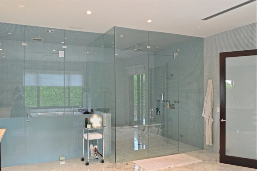 • Spa-style bath with soaking tub and glass-enclosed steam shower