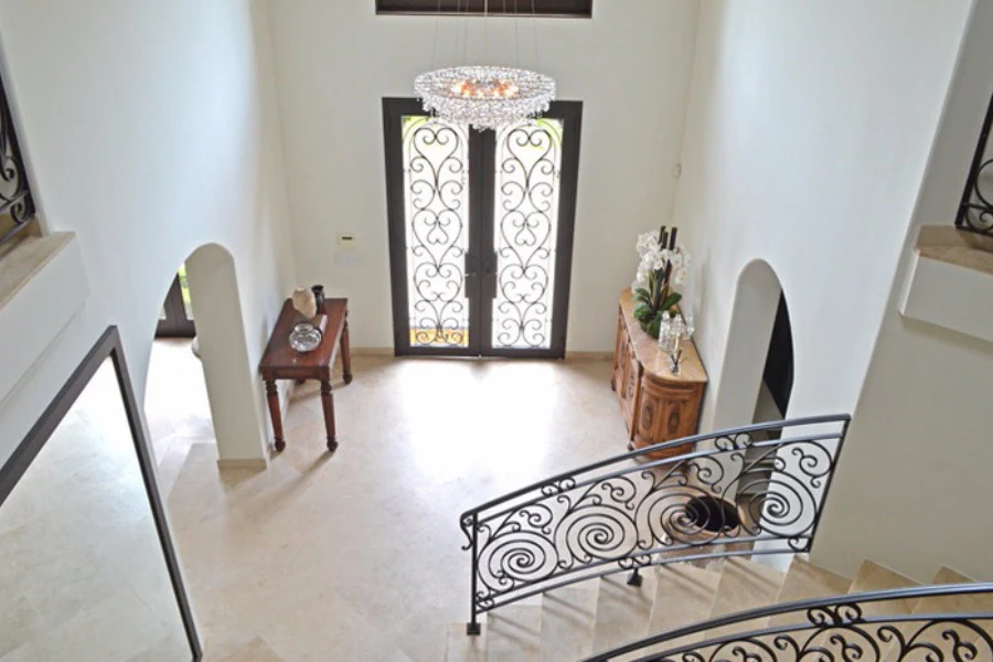 • Sweeping wrought-iron staircase