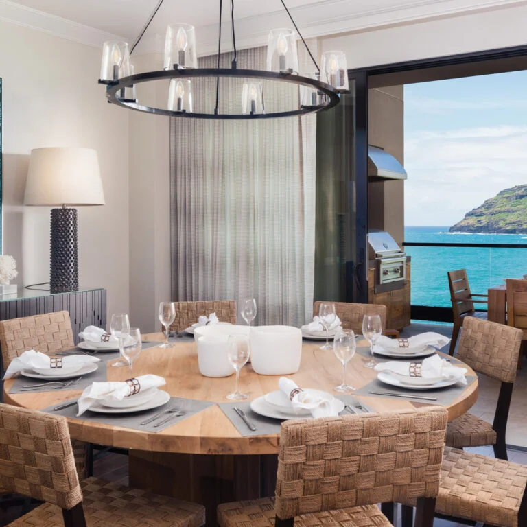 These residences offer three- or four-bedroom floor plans with up to four private lanais and approximately 3,100 square feet to relax, gather, and recharge. The layout is spacious and airy, giving everyone room to unwind while keeping shared spaces inviting for meals, conversations, and quiet moments.