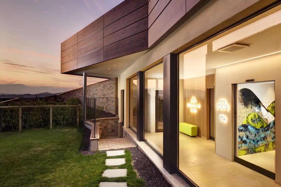 The elegant and modern furnishing adds an eclectic, urban and contemporary touch, creating a fascinating contrast with the gentle and relaxing landscape outside.