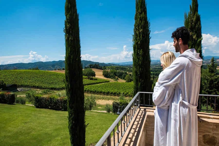 Relax. Take a deep breath, close your eyes, and imagine yourself in a private whirlpool tub immersed in the breathtaking landscape of the gentle hills of Umbria. A feeling of well-being, peace and harmony you can enjoy in the absolute privacy of your Romantic Suite.