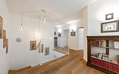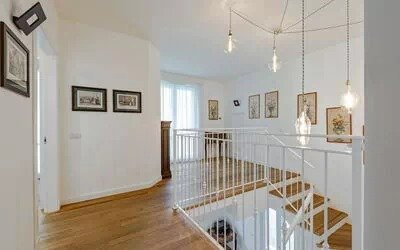 Completed in 2019, the villa’s generous proportions and refined layout make it particularly well suited for large families or groups. The estate spans approximately 2,500 square meters in total, with the main residence arranged over two levels of about 250 square meters each, plus a 200-square-meter basement housing service areas. Interior finishes are of notable quality: the ground floor features traditional Lombard antique terracotta flooring, while the staircase and first-floor floors are crafted from chestnut wood aged for 20 years prior to installation. All windows are soundproofed to ensure a tranquil indoor environment.