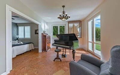 This level hosts a spacious and sun-filled living room furnished with comfortable seating and equipped with satellite television, DVD player, Wi-Fi, and a CD system. Adjacent to the main living space is a second lounge overlooking the lake, where guests will find a fully functional grand piano.