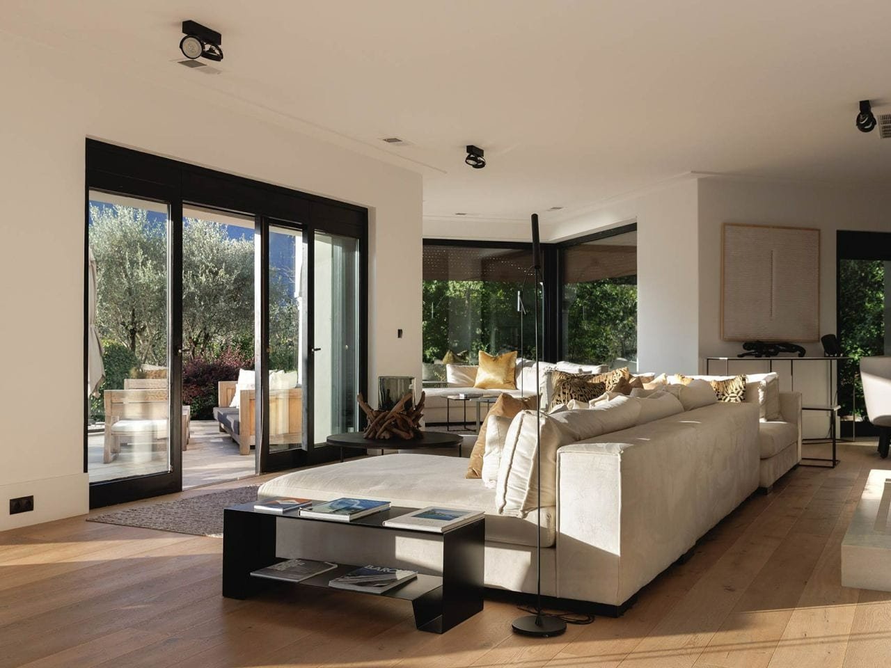 floor cooling system Spacious living room with lake view