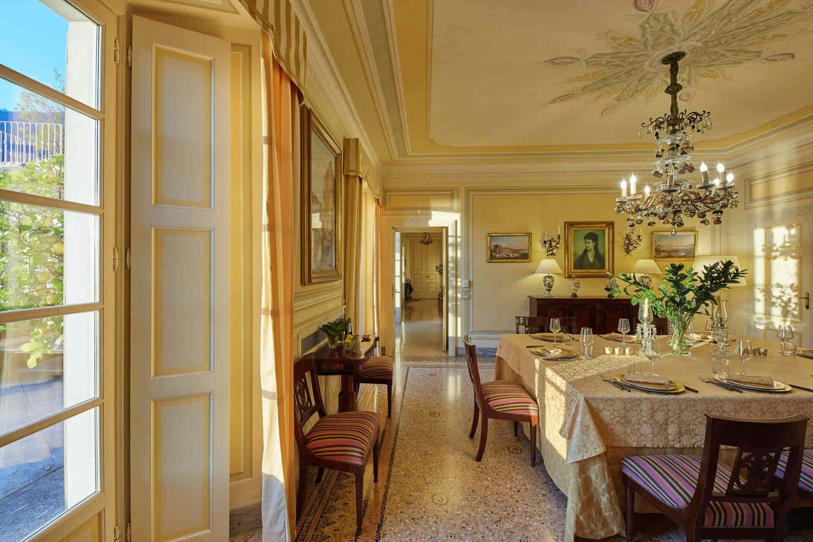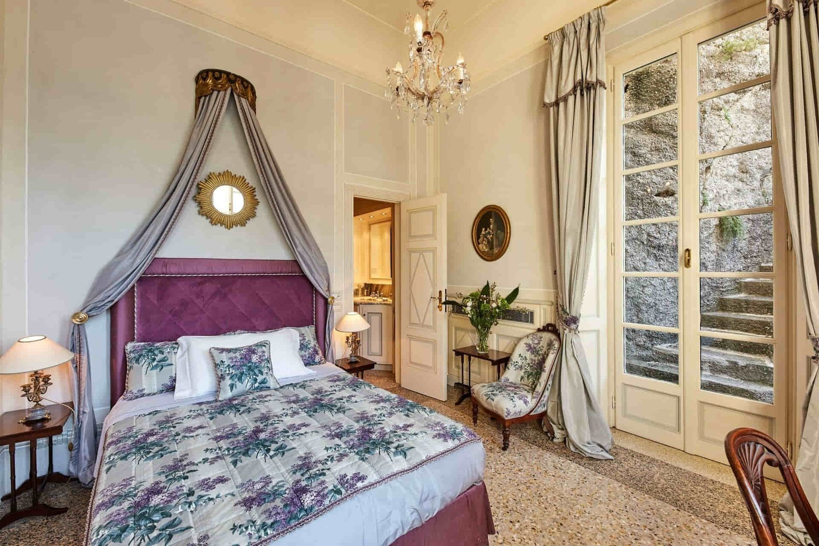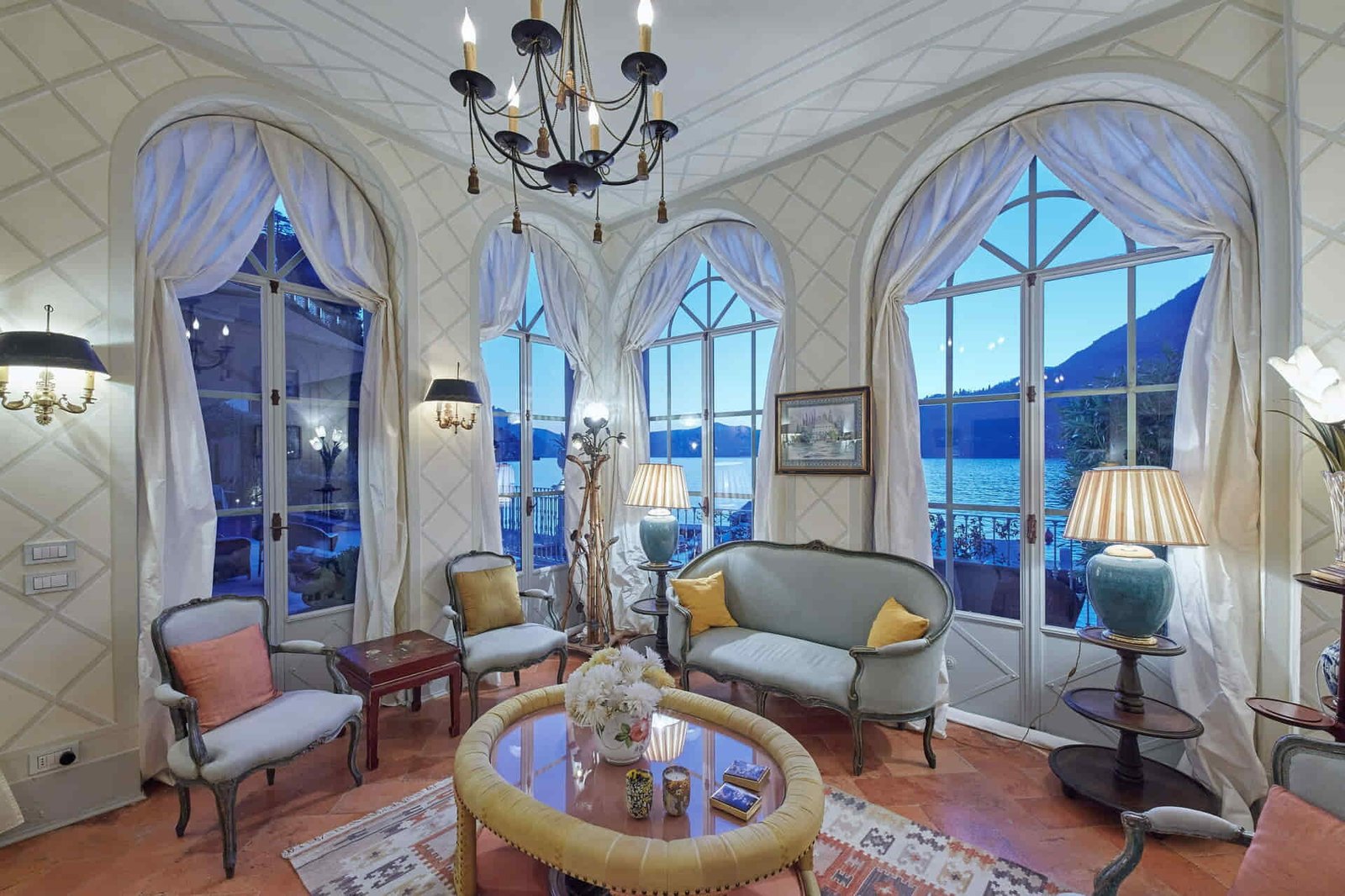 The majestic lake is ever present in the villa’s eight rooms thanks to large windows that bring the outside in and open up to balconies with enchanting views.